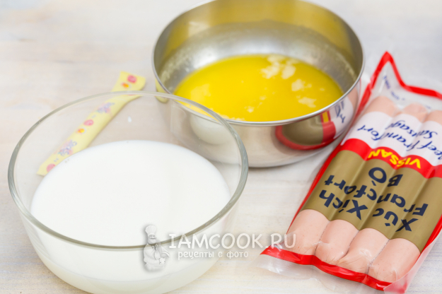 Для приготовления пирога с сосисками на дрожжевом тесте подготовьте продукты по списку.