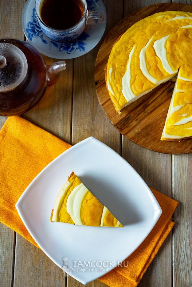 Творожная запеканка «Зебра» с тыквой готова. Желательно охладить её, затем нарезать и подать к столу. Приятного чаепития!
