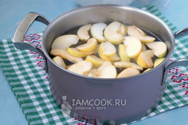 Опустить в кастрюлю яблоки.