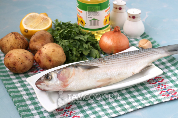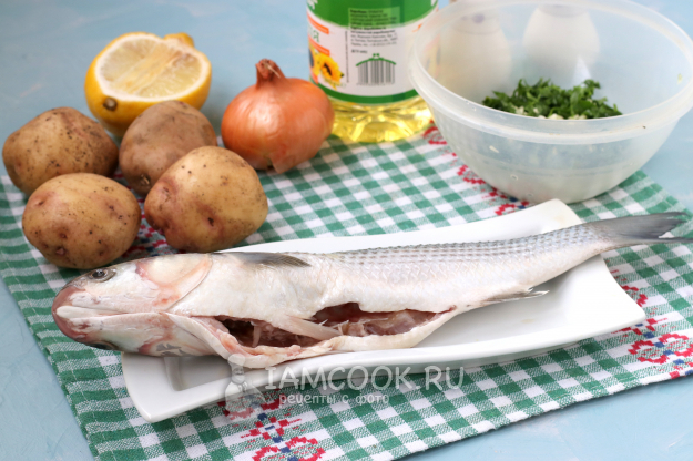 Для запекания кефали с картошкой в духовке подготовить необходимые ингредиенты.