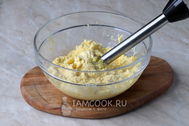 С помощью погружного блендера перетрём массу до однородного состояния.