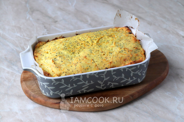 Отправим заготовку в разогретую до 180 градусов духовку на 35-40 минут, в зависимости от её мощности. Запеканка должна приобрести золотистый цвет и упругую поверхность. Переложим её на металлическую решётку и немного остудим.