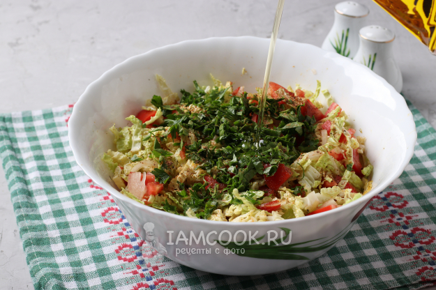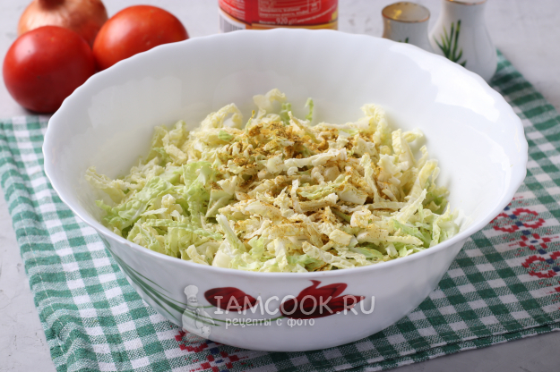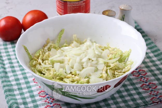 Я предлагаю приготовить с этой капустой простой салат, добавить в него помидоры и лук, а заправить душистым постным маслом, которое многие называют "базарным". Сейчас такое масло можно купить не только на рынке, но и в супермаркете.