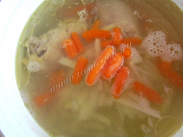 Капуста кольраби - полезный и ценный овощ, из которого можно приготовить большое количество вкусных блюд, в том числе и легкий овощной суп на курином бульоне. Такой суп подойдет и для детского питания. Добавьте в суп морковь сорта "мини" и ваши детки с удовольствием съедят тарелочку этого полезного и яркого супа. Морковь "мини" можно заменить обычной морковью.