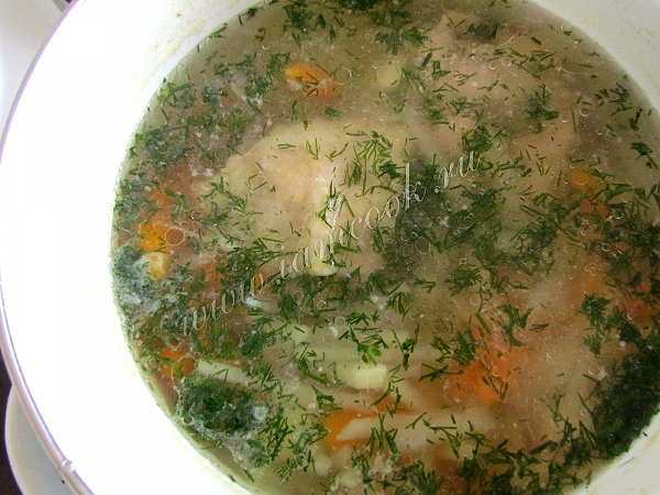 Варите суп до готовности овощей. В конце варки достаньте из супа луковицу - она нам больше не понадобится, и добавьте мелко нарезанную зелень петрушки и укропа.