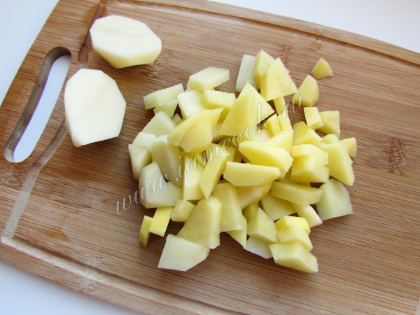 Картофель очистите от кожуры, вымойте и произвольно нарежьте.