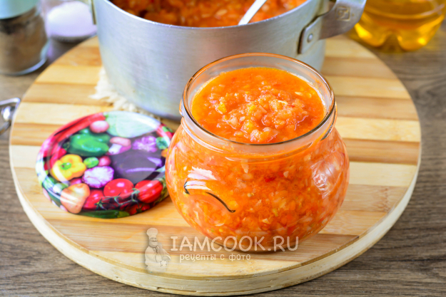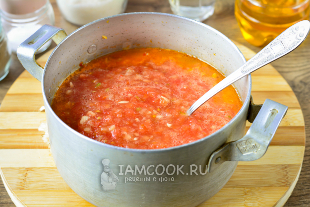 Влейте томатное пюре в икру, томите на небольшом огне еще 15 минут - до загустения. По желанию поперчите.
