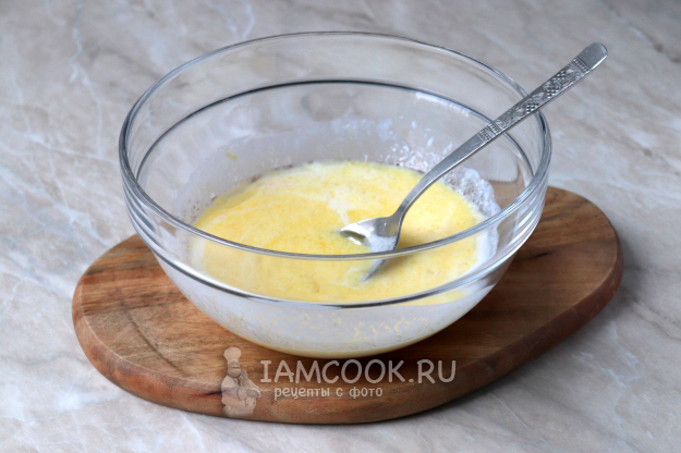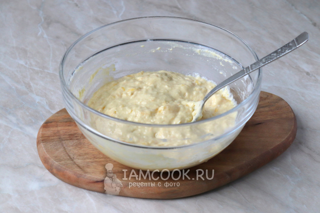Тесто должно получиться густым и вязким: если набрать его в ложку, а затем ложку опустить вниз, оно лениво будет по ней сползать.