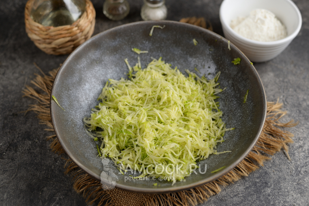 А пока картофель готовится, натрите кабачок на самой мелкой терке, обязательно отожмите лишнюю воду, иначе котлеты могут получиться мокрыми.