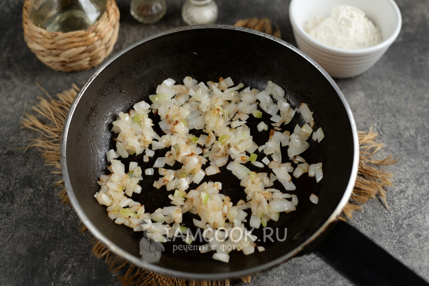 В минимальном количестве растительного масла обжарьте измельченный репчатый лук.