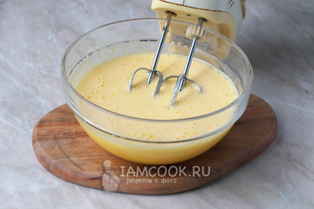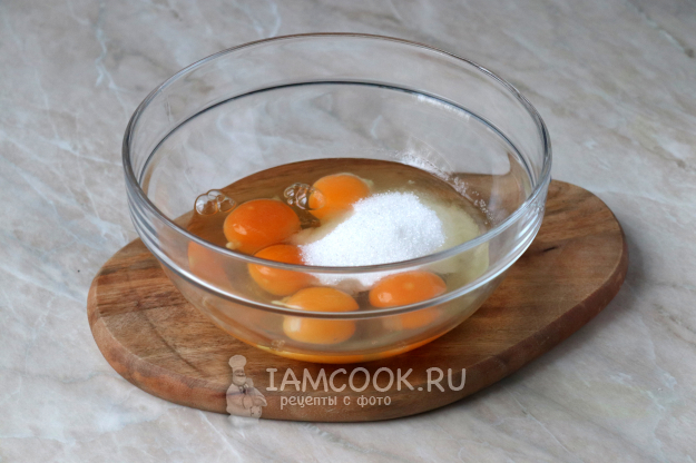 Яйца вбить в глубокую сухую миску и добавить сахарный песок.