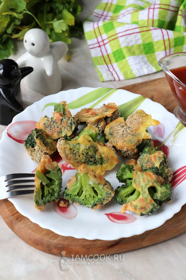 Вот и всё, вкуснейшее овощное блюдо, готово. Брокколи в кляре переложите на порционную тарелку и подавайте на стол.
