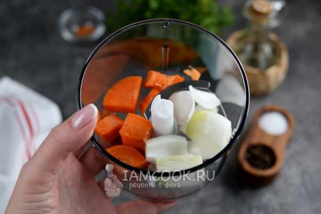 Нарежьте овощи, переложите их в блендер, смелите на средних оборотах или пропустите через мясорубку с мелким решетом.