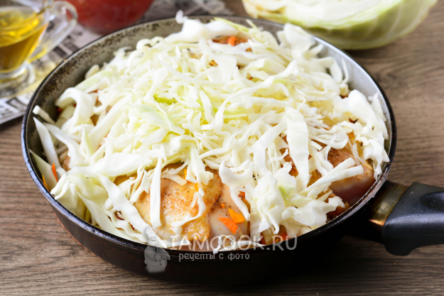 Всыпьте капусту в сковороду.