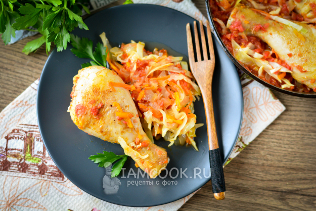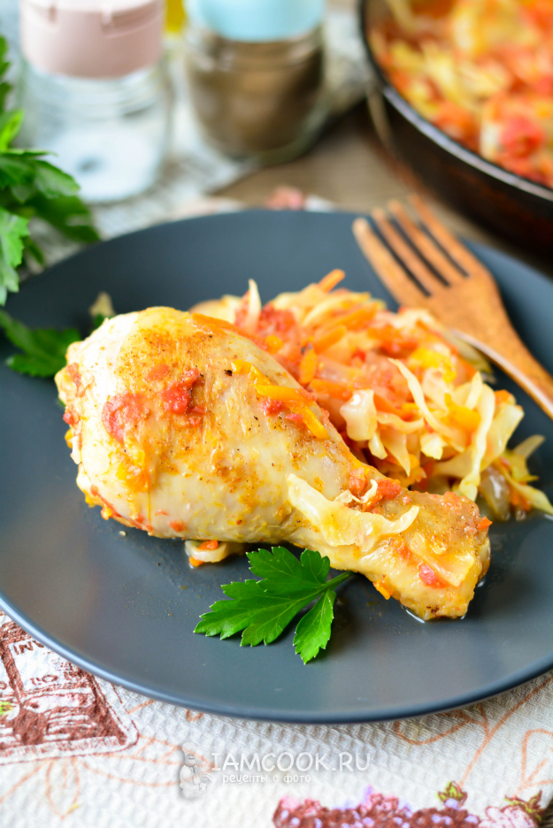 В горячем виде сразу подавайте к столу - куриное мясо и рядом тушеную капусту, будет очень вкусно!