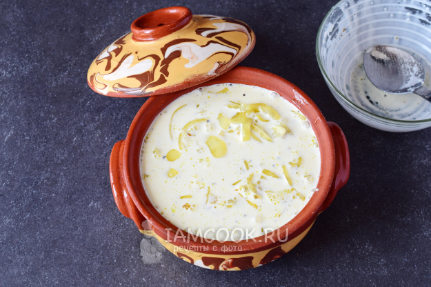 ВАЖНО: не нужно заливать печень сливками до краев горшочка. В процессе запекания сливки будут кипеть и выливаться из горшочка, если их будет слишком много.
