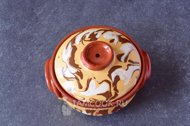 Ложкой перемешаем содержимое всего горшочка. Накрываем горшочки крышками и отправляем в разогретую духовку на 40 минут.