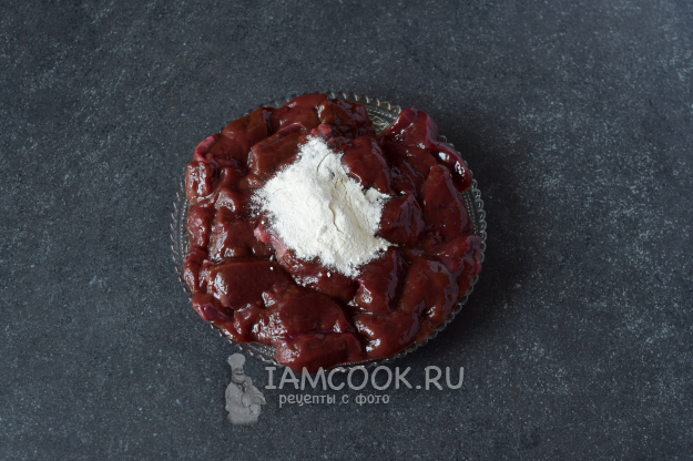 Кусок говяжьей печени сначала зачищаем от пленок. Нарезаем печень пластинами 2-3 см толщиной.