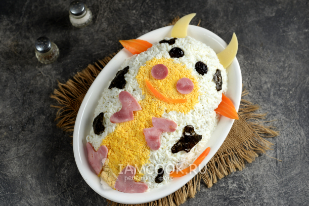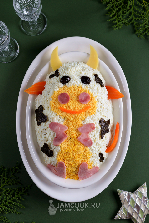 Вот такой красивый салат «Оливье» на Новый год Быка 2021 у нас получился в итоге. Желаю всем, чтобы мой год принес вам только позитивные эмоции.