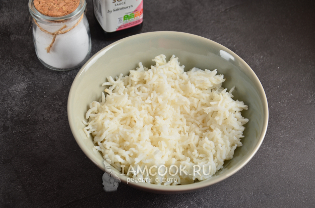Когда рис сварится, переложите часть его в глубокую тарелку.