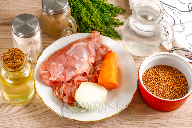 Возьмите необходимые ингредиенты для приготовления гречки с индейкой и овощами в казане и начнем кулинарить!