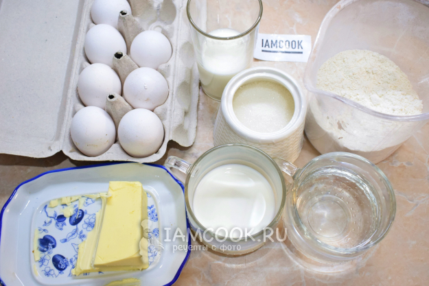 Возьмите ингредиенты для приготовления эклеров с кракелюром. Муку просейте через сито, чтобы насытить её кислородом. Молоко можно использовать любой жирности.