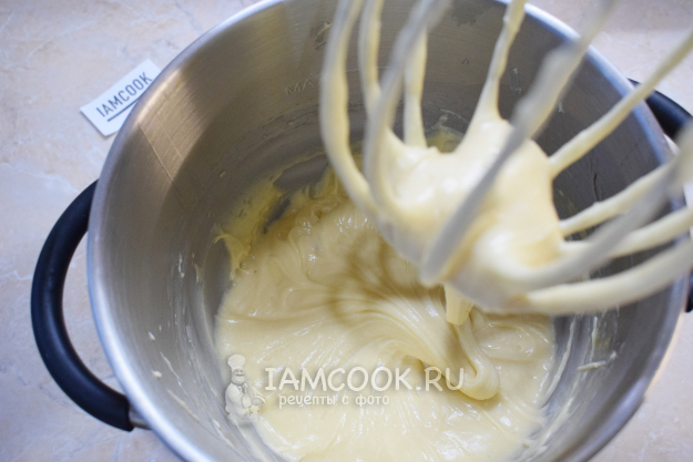 Готовое заварное тесто стекает с венчика, но будет держать свою форму на поверхности.