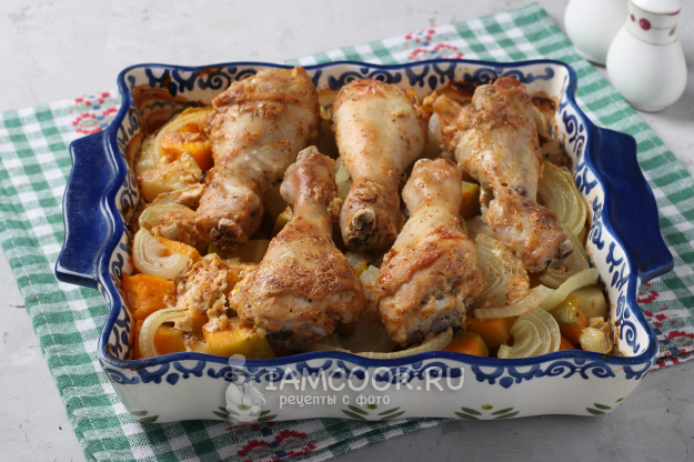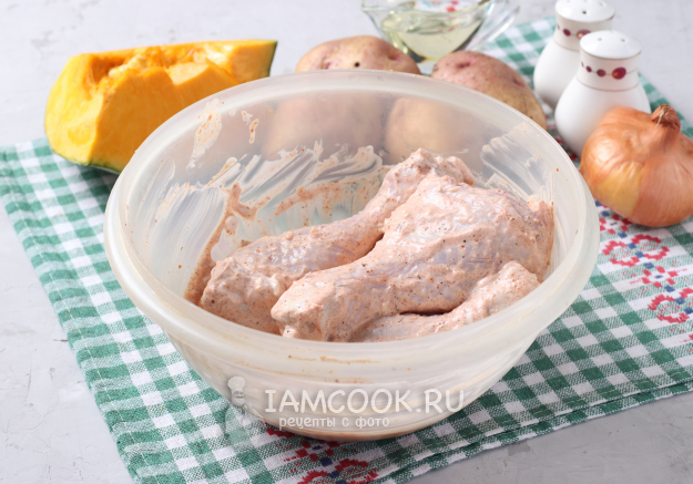 Для приготовления тыквы с курицей и картошкой в духовке подготовить из списка необходимые ингредиенты.
