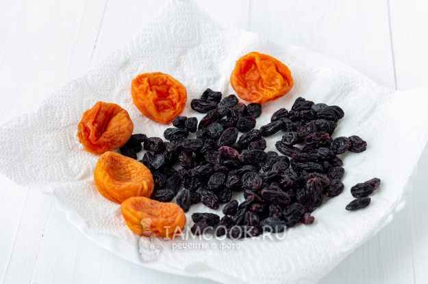 Замоченные сухофрукты промойте и просушите на бумажном полотенце, чтобы не было лишней влаги.