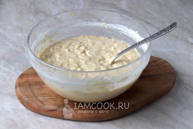 Тесто должно получиться достаточно густым и вязким, по консистенции напоминающим сметану (как на фото).