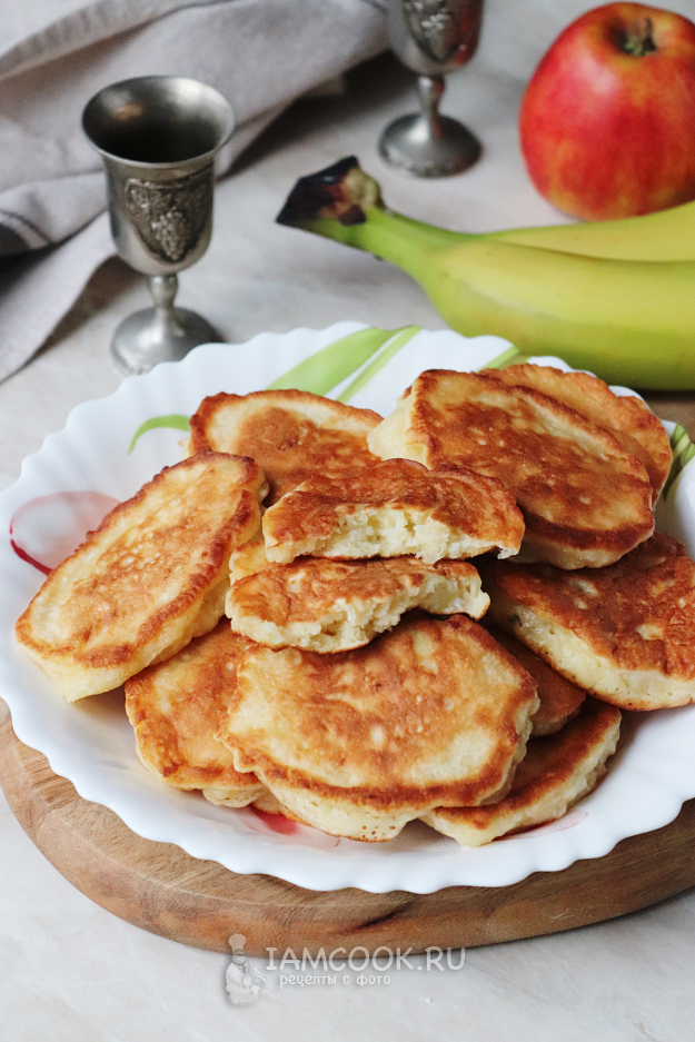 Ароматные, и очень вкусные оладьи с яблоком и бананом готовы. Подавайте их сразу же на стол, дополнив композицию мёдом и чашечкой травяного чая.