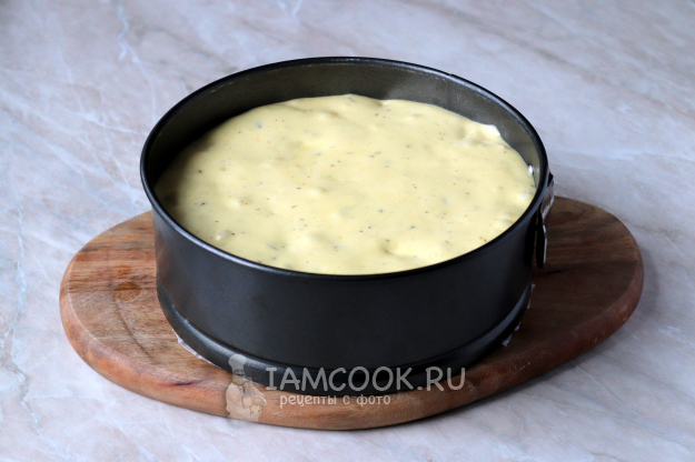 Готовое тесто переложите в форму, застеленную пергаментом.