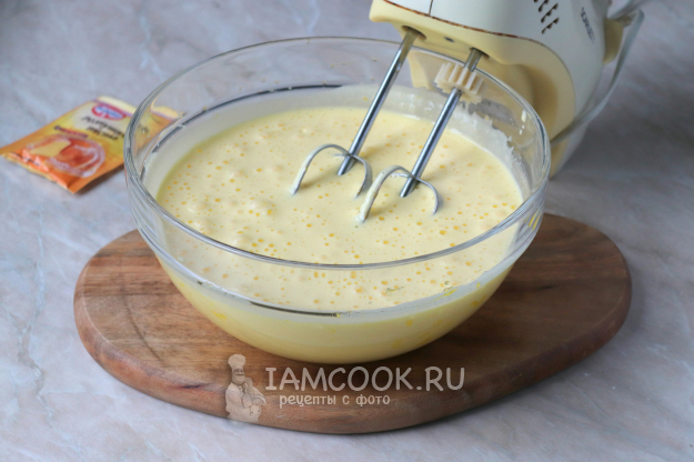 Взбейте миксером до получения светлой пышной массы.
