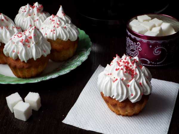 При желании на этом этапе можно положить кусочки шоколада на капкейки - они растают и образуют вкуснейшую шоколадную "шапочку".