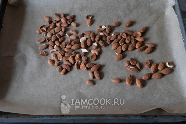 Перед перемалыванием в муку оба вида миндаля следует просушить в духовке при температуре 100-120°С без циркуляции воздуха 2-3 минуты.