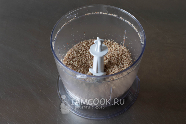Остывший миндаль перемолоть в муку. В таком чоппере, как у меня, удобно промалывать за 1 раз 150-200 граммов. Ни в коем случае нельзя допускать перегревания прибора, то есть ему нужны паузы между промалыванием двух порций.