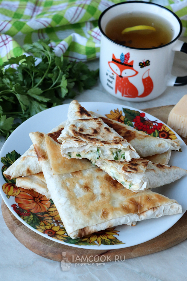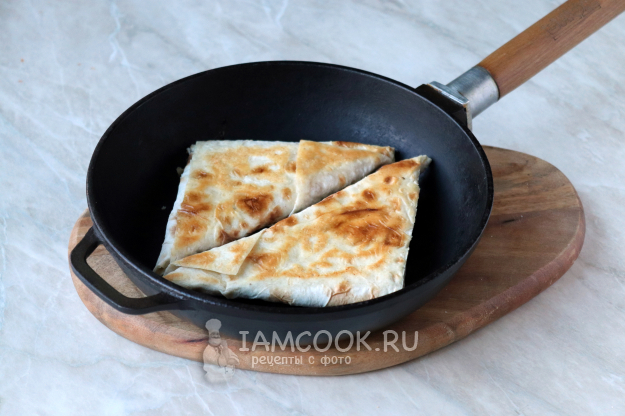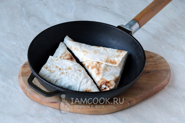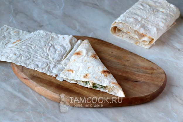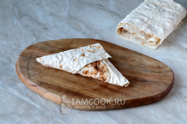 Сверните лаваш треугольником так, чтобы сыр оказался внутри и не было открытых отверстий.
