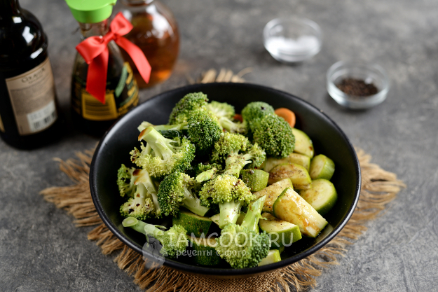 Аккуратно разрежьте пакет, разложите овощи по тарелкам, полейте образовавшимся соком. Запеченные в духовке брокколи с кабачками готовы. Просто, вкусно и очень полезно.