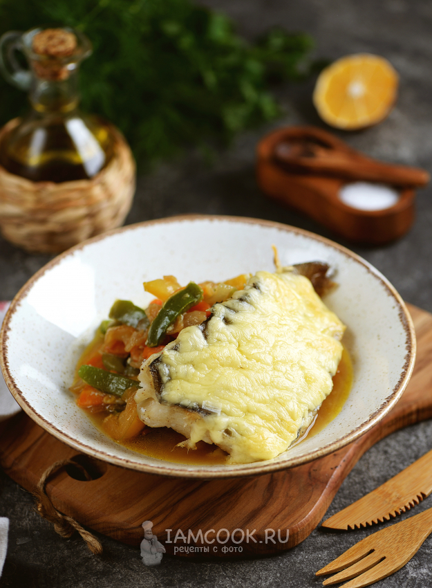 Простой в приготовлении, очень вкусный и сочный минтай с овощами под сыром в духовке готов. Разложите блюдо по порциям, полейте образовавшейся подливой и подавайте к столу. При желании к рыбе можно подать ломтик лимона.