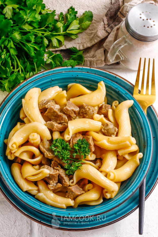 Возьмите необходимые ингредиенты для приготовления говядины с макаронами в мультиварке.