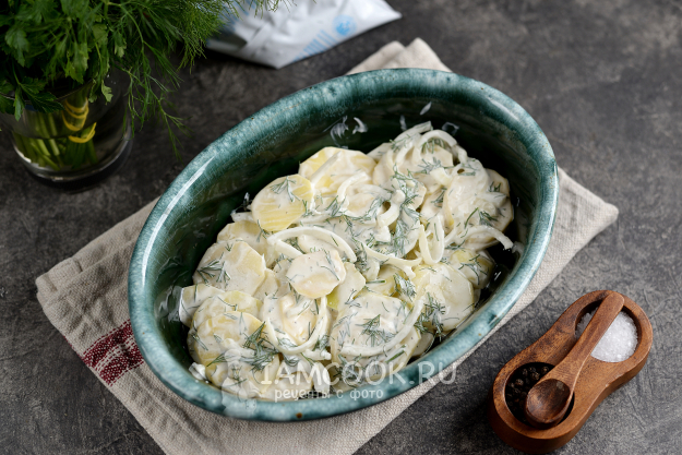 Сметана должна быть с высоким процентом жирности и проверенного производителя, нежирная сметана может сделать сырой картофель "стеклянным" и невкусным.