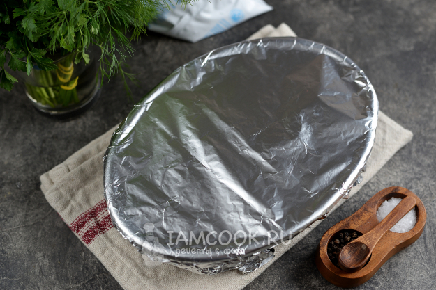 Накройте форму плотно фольгой, отправьте ее в предварительно разогретую до 190 градусов духовку в режиме без конвекции на 50-60 минут.
