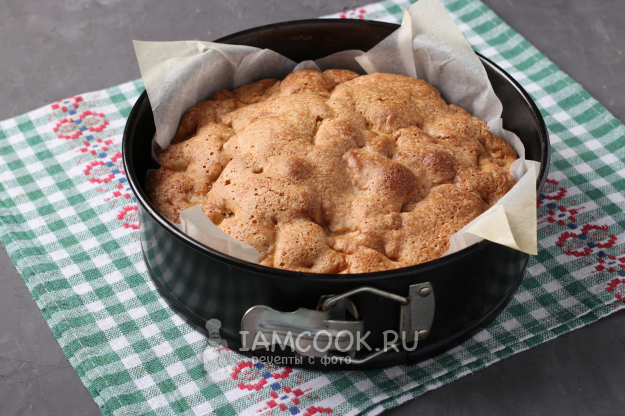 Остывшую шарлотку посыпать сахарной пудрой, нарезать кусочками и подать к столу.