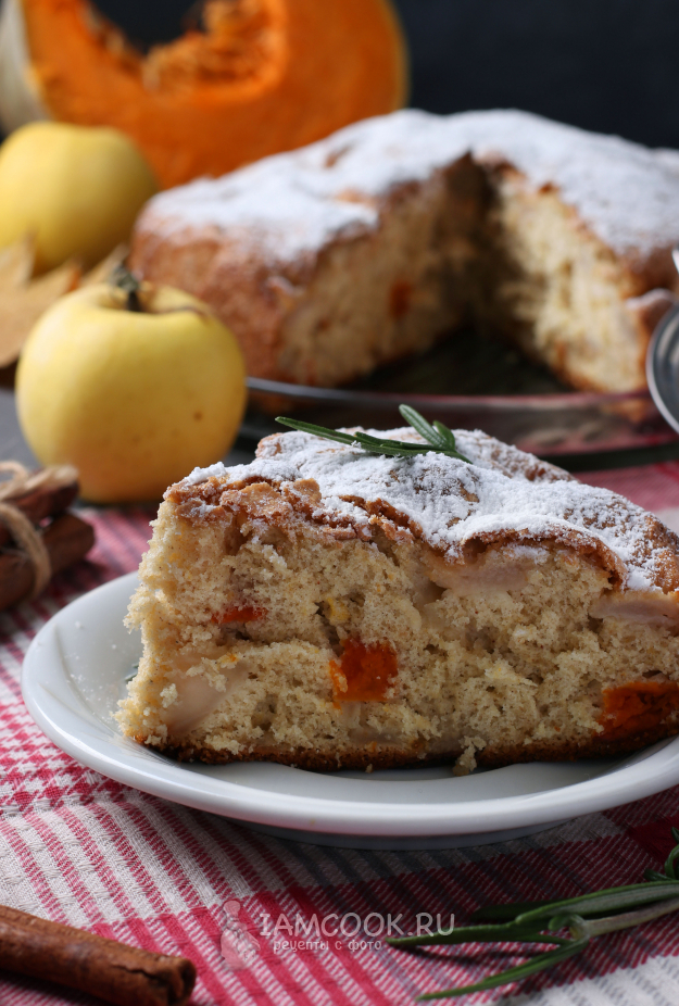 Разогреть духовку до 180 градусов и печь шарлотку с яблоками и тыквой 35-40 минут. Готовность проверить с помощью деревянной шпажки.