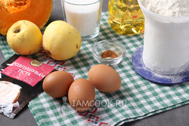 Для приготовления шарлотки с яблоками и тыквой в духовке подготовить из списка необходимые ингредиенты.