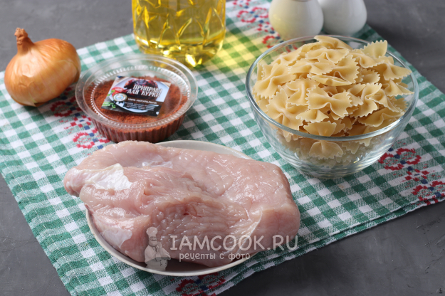 Для приготовления индейки с макаронами в духовке подготовить из списка необходимые ингредиенты.