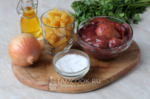 Для приготовления макарон по-флотски с куриной печенью подготовьте необходимые компоненты.
