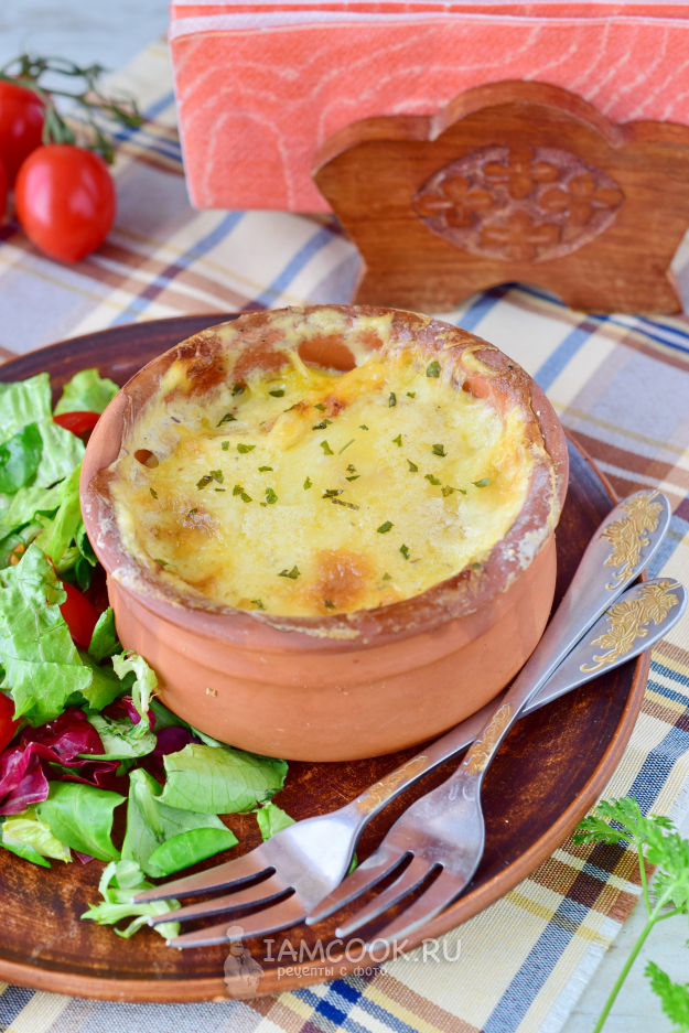Жульен с кальмарами и креветками готов. Кушать его лучше горячим.