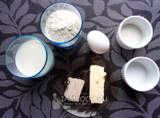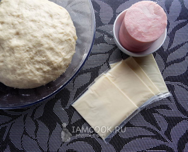 Приготовление несладких дрожжевых булочек с ветчиной и сыром начнём с замеса теста.
