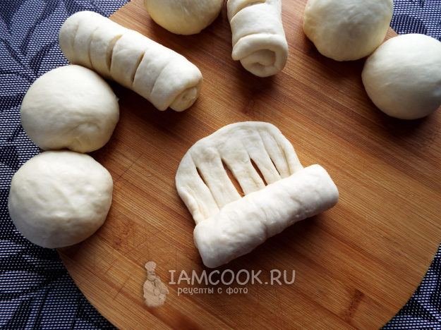 Тесто разделить на равные кусочки.